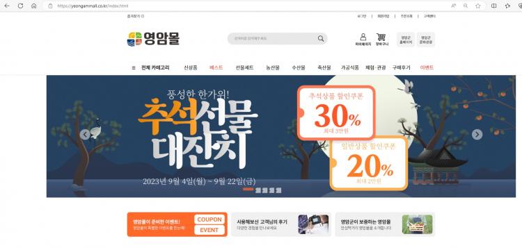 ¿µ¾Ï±º(±º¼ö ¿ì½ÂÈñ)ÀÌ Ãß¼®À» ¾ÕµÎ°í ÀÌ´Þ 22ÀϱîÁö ÃÖ´ë 30%±îÁö ½Î°Ô ¿µ¾ÏÀÇ ³óƯ»êǰÀ» ÆÇ¸ÅÇÏ´Â ±âȹÀü°ú À̺¥Æ®¸¦ ÁøÇàÇÑ´Ù.¡®¿µ¾ÏÀ» ´ãÀº ÃÖ°íÀÇ ³óƯ»ê¹°·Î °¨»çÀÇ ¸¶À½À» ³ª´©¼¼¿ä¡¯¶õ ±¸È£¿Í ÇÔ²² ¿µ¾Ï ´ëÇ¥ ³óƯ»ê¹°Àº 20%, Ãß¼® ¼±¹°¼¼Æ®´Â Ãß°¡·Î 10% ´õ ÇÒÀÎÇÑ 30% ½Ñ °¡°Ý¿¡ ÆÇ¸ÅÇϰí ÀÖ´Ù. ¿µ¾Ï¸ô Á¦Ç°Àº ¿µ¾Ï±ºÀÌ º¸ÁõÇÏ´Â ³óƯ»ê¹°À̾î¼, ¼ÒºñÀÚ´Â ¸î ¹øÀÇ ¸¶¿ì½º ¡®Å¬¸¯¡¯¸¸À¸·Îµµ ºÎ´ã ¾ø´Â °¡°Ý¿¡ µçµçÇÏ°Ô ¸íÀý Áغñ¸¦ ¸¶Ä¥ ¼ö ÀÖ´Ù.