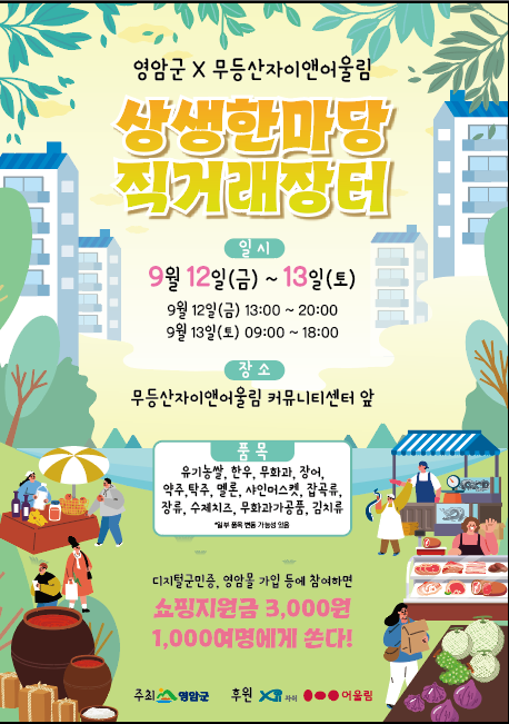 ¡®¿µ¾Ï±º & ¹«µî»êÀÚÀ̾ؾî¿ï¸² »ó»ý ÇѸ¶´ç Á÷°Å·¡ÀåÅÍ¡¯ÀÇ À̸§À¸·Î ÁøÇàµÇ´Â À̹ø Á÷°Å·¡ÀåÅÍ´Â, µµ½Ã ¼ÒºñÀÚ¿¡°Ô ¿µ¾Ï±ºÀÇ ¿ì¼ö ³óƯ»ê¹°À» ¾Ë¸®°í, ¾ÈÁ¤Àû ³ó°¡ ¼Òµæ, Áö¿ª ºê·£µå °¡Ä¡ Çâ»ó µîÀ» ÀÇÇØ ¸¶·ÃµÆ´Ù.