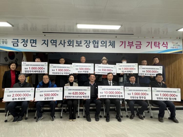 ¿µ¾Ï±º ±ÝÁ¤¸éÁö¿ª»çȸº¸ÀåÇùÀÇü(°øµ¿À§¿øÀå ³ëÀ翵, ¹ÚÀºÁÖ)°¡, 30ÀÏ ¸éÇàÁ¤º¹Áö¼¾ÅÍ¿¡¼ ¿¸° ±âŹ½Ä¿¡¼ ´Üü¡¤°³ÀΡ¤±â¾÷ 12°÷ÀÇ ±âºÎ±Ý 1,967¸¸¿øÀ» ¹Þ¾Ò´Ù.