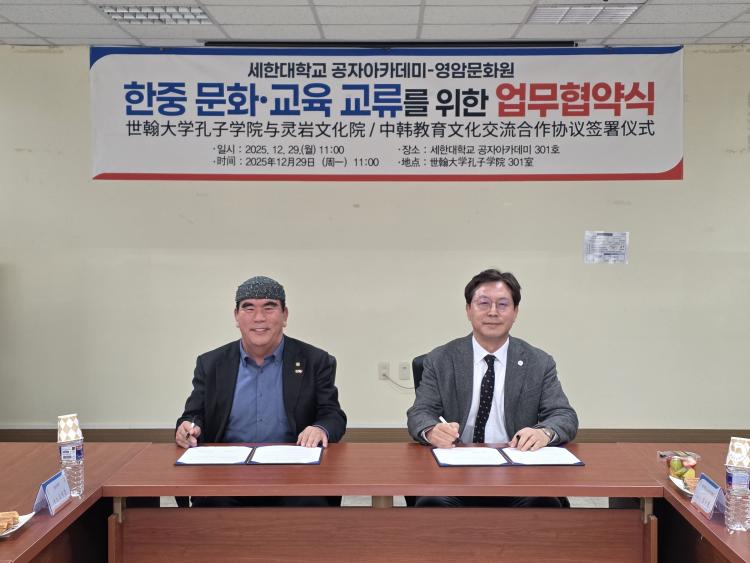 ¼¼ÇÑ´ëÇб³ °øÀÚ¾ÆÄ«µ¥¹Ì¿Í ¿µ¾Ï¹®È¿øÀº 12¿ù 29ÀÏ ¼¼ÇÑ´ëÇб³ °øÀÚ¾ÆÄ«µ¥¹Ì¿¡¼ ¿ìÈ£ ±³·ù Çù¾àÀ» ü°áÇß´Ù. À̳¯ Çù¾à½Ä¿¡´Â ¼¼ÇÑ´ëÇб³ °øÀÚ¾ÆÄ«µ¥¹Ì Çѱ¹Ãø ¿øÀå ±èÀç¿ø, Áß±¹Ãø ¿øÀå À帰, ¿µ¾Ï¹®È¿ø ¿øÀå ÀÌÁ¤ÈÆ, »ç¹«±¹ÀåÀ» ºñ·ÔÇÑ ¾ç ±â°ü °ü°èÀÚµéÀÌ Âü¼®Çß´Ù.