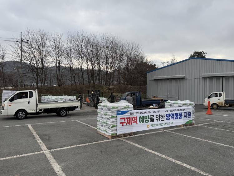 ¿µ¾ÏÃà»ê¾÷Çùµ¿Á¶ÇÕ(Á¶ÇÕÀå À̸ÍÁ¾)Àº °¡ÃàÀü¿°º´ ¿¹¹æ°ú Áö¿ª Ãà»ê³ó°¡ÀÇ ¹æ¿ª ¿ª·® °È¸¦ À§ÇØ Áö³ 2¿ù 4ÀÏ(¼ö)ºÎÅÍ 2¿ù 6ÀÏ(±Ý)±îÁö 3Àϰ£ ¿µ¾ÏÃàÇù °¡Ãà½ÃÀå ³»¿¡¼ ¹æ¿ª¹°Ç° ¹èºÎ¸¦ ½Ç½ÃÇß´Ù.