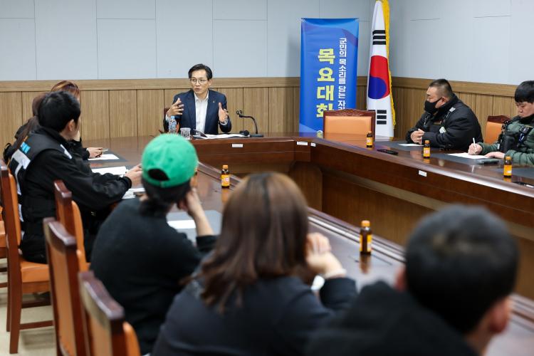 ¿µ¾Ï±ºÀÌ 20ÀÏ »ïÈ£À¾ÇàÁ¤º¹Áö¼¾ÅÍ¿¡¼ ¡®¼ÒÅëÀÇ Ã¢À» ¿©´Â ½Ã°£, ¸ñ¿ä ´ëÈ¡¯¸¦ ¿¾î ¹è´Þ´ëÇà±â»ç µî ¹è´Þ¾÷ Á¾»çÀÚµéÀÇ ¾Ö·Î»çÇ×À» µè°í, ¾ÈÁ¤Àû ±Ù¹« ȯ°æ Á¶¼ºÀ» À§ÇØ ´Ù¾çÇÑ À̾߱⸦ ³ª´³´Ù.