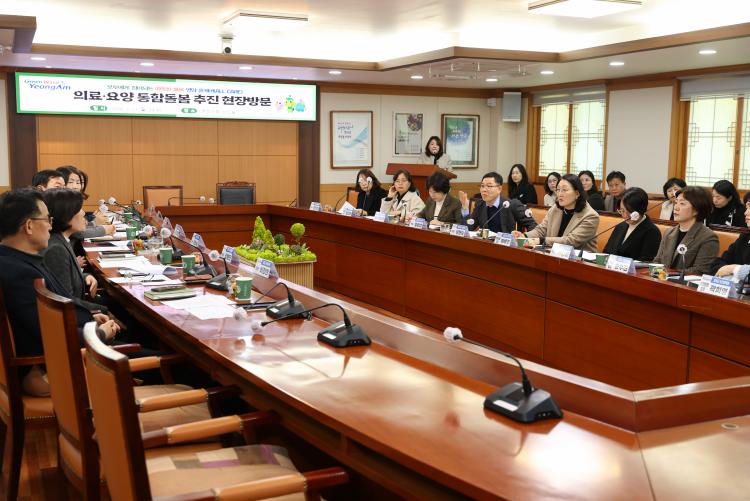 ÇöÀåÀ» ¹æ¹®ÇÑ Àü³² º¸°Çº¹Áö °øÁ÷ÀÚµéÀº ÇàÁ¤¡¤º¸°Ç¡¤º¹Áö ºÎ¼ °£ Çù¾÷ ±¸Á¶, ÅëÇÕÁö¿øÈ¸ÀÇ ¿î¿µ ¹æ½Ä¿¡ ³ôÀº °ü½ÉÀ» º¸¿´´Ù.