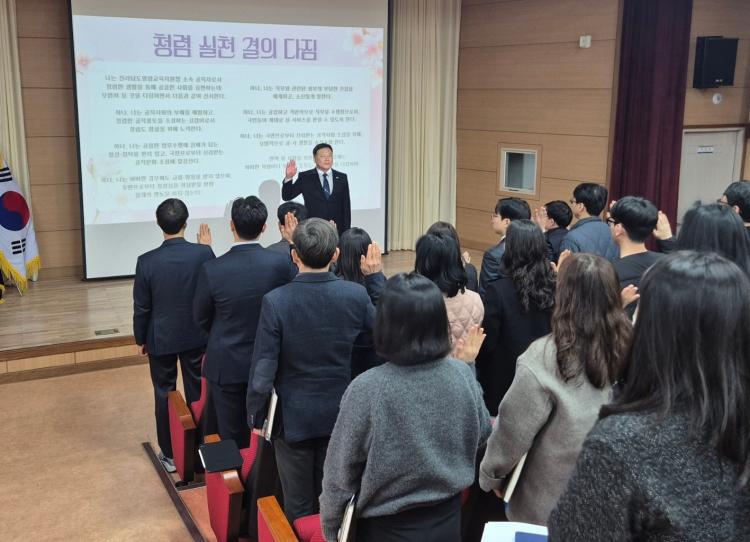 Àü¶ó³²µµ¿µ¾Ï±³À°Áö¿øÃ»(±³À°Àå ±è±¤¼ö)Àº 3¿ù 3ÀÏ Ã»»ç³»¿¡¼ »õÇб⸦ ¸Â¾Æ Àü Á÷¿øÀ» ´ë»óÀ¸·Î ¡¸Ã»·Å½Çõ °áÀǹ®¡¹ ³¶µ¶°ú ¡¸°©Áú±ÙÀý ´ÙÁü¡¹ ¼¾àÀ» ½Ç½ÃÇÏ¿´´Ù. À̹ø Çà»ç´Â »õÇб⸦ ½ÃÀÛÇÏ¸ç »õ·Î¿î ¸¶À½°¡ÁüÀ¸·Î °øÁ÷ÀÚÀÇ ±âº»°¡Ä¡¸¦ µÇ»õ±â°í, û·Å°ú »óÈ£Á¸ÁßÀÇ Á¶Á÷¹®È¸¦ ´õ¿í ±»°ÇÈ÷ ´ÙÁö±â À§ÇØ ¸¶·ÃµÇ¾ú´Ù.