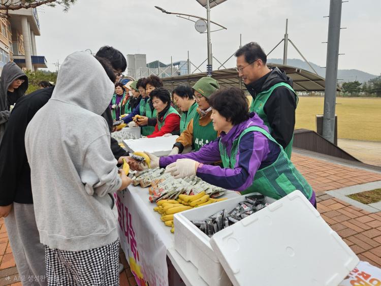 À̹ø Çà»ç¿¡´Â 11À¾¸é ¿µ¾Ï±º»õ¸¶À»ºÎ³àȸ ȸ¿øµéÀÌ Âü¿©ÇØ À̸¥¾ÆÄ§ºÎÅÍ ÁغñÇÑ »ï°¢±è¹ä°ú À½·á, °úÀÏÀ» µî±³ÇÏ´Â Çлýµé¿¡°Ô ³ª´²ÁÖ¸ç µû¶æÇÑ °Ý·Á¸¦ ÀüÇß´Ù. ƯÈ÷ Áö¿ª¿¡¼ »ý»êµÈ ¿µ¾Ï½ÒÀ» Ȱ¿ëÇØ ³ó»ê¹° ¼Òºñ ÃËÁø¿¡µµ ÈûÀ» º¸ÅÉ´Ù.