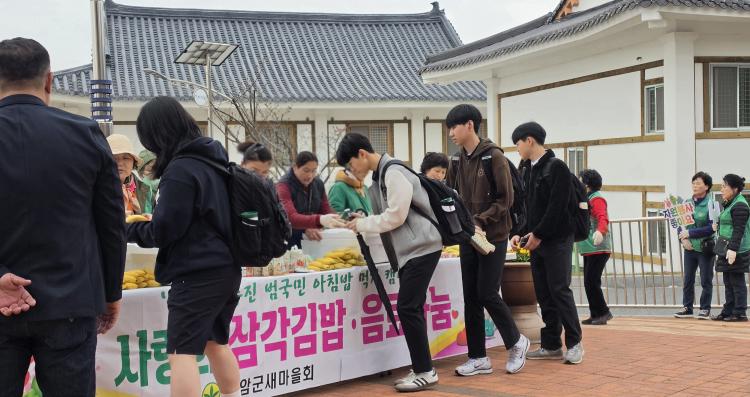 À̳¯ Çà»ç´Â À̸¥ »õº®ºÎÅÍ ÁغñµÆ´Ù. »õ¸¶À»È¸ ȸ¿øµéÀº ¿ÀÀü 4½ÃºÎÅÍ Á÷Á¢ »ï°¢±è¹äÀ» ¸¸µé°í Æ÷ÀåÇϸç ÇлýµéÀ» ¸ÂÀÌÇÒ Áغñ¸¦ ¸¶ÃÆ´Ù. ÁغñµÈ »ï°¢±è¹ä°ú À½·á´Â µî±³ÇÏ´Â Çлý°ú ±³Á÷¿ø 500¸í¿¡°Ô Àü´ÞµÇ¸ç µû¶æÇÑ ÀÀ¿øÀÇ ¸¶À½À» ÀüÇß´Ù. ¿©±â¿¡ ¹Ù³ª³ª¸¦ ´õÇÑ ¾ÆÄ§ ²Ù·¯¹Ì·Î dz¼ºÇÔÀ» ´õÇß´Ù.