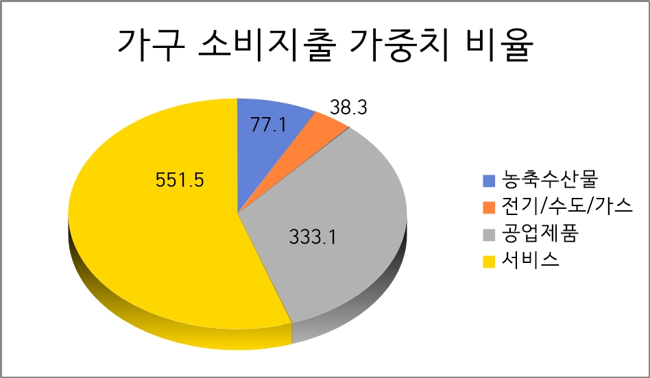 - °¡ÁßÄ¡: °¢°¢ÀÇ ´ëǥǰ¸ñÀÌ Àüü °¡±¸ÀÇ ¼ÒºñÁöÃâ¿¡¼ Â÷ÁöÇÏ´Â ºñÁß(±âÁØ 1000)